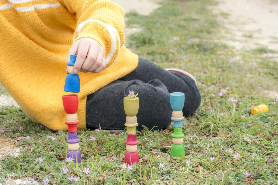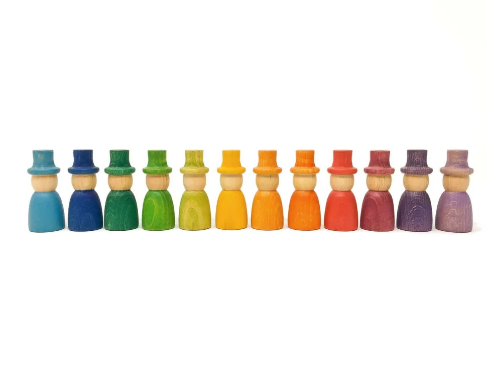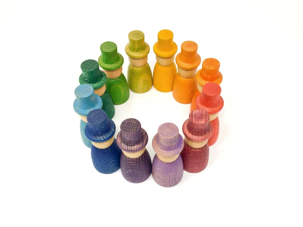 12 Nins met hoed. De hoedjes zijn plat van boven dus de Nins kunnen ook gestapeld worden.