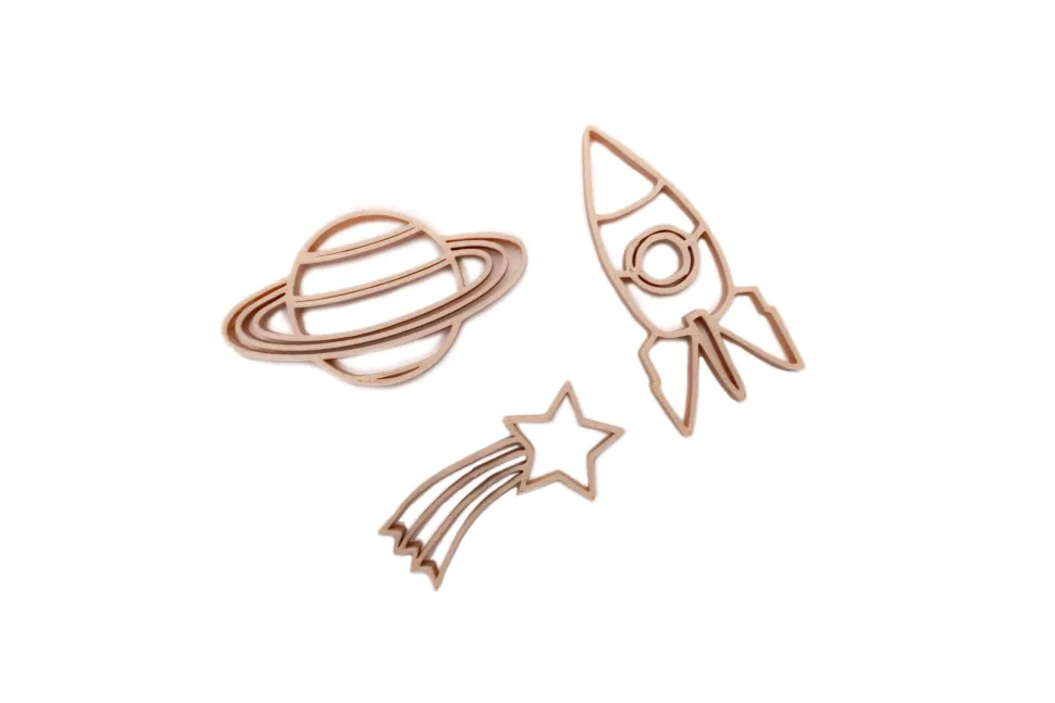 Leuke uitstekers van een planeet, een vallende ster en een raket.