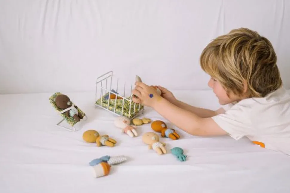 Een lief ledikant speciaal voor de pocket edities van We Are Gommu. Leuk om alle meubeltjes en popjes te sparen voor gezellig poppenspel.