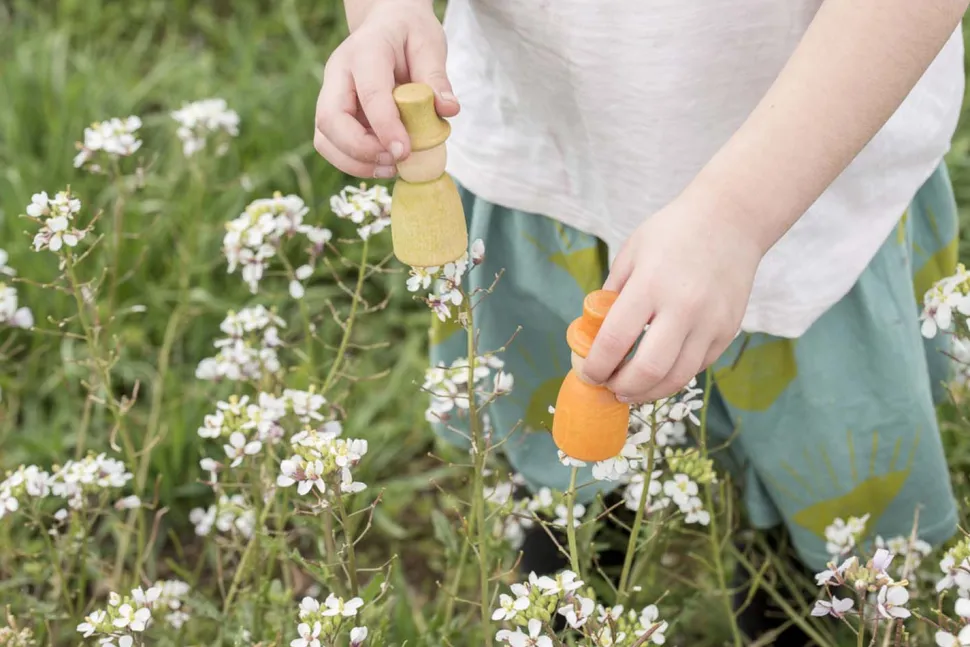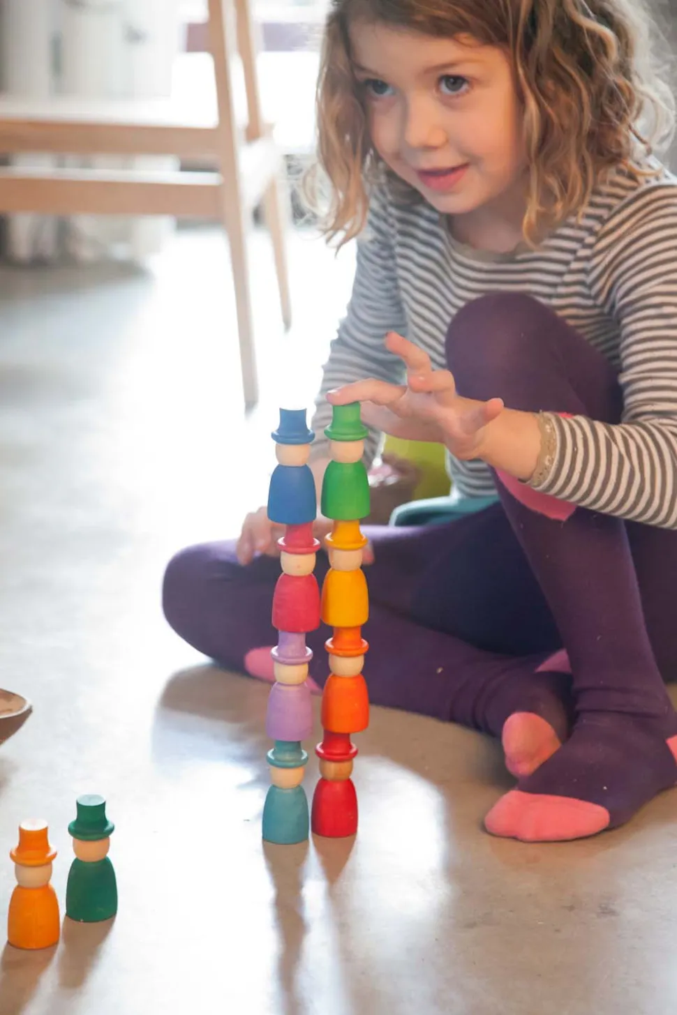 12 Nins met hoed. De hoedjes zijn plat van boven dus de Nins kunnen ook gestapeld worden.