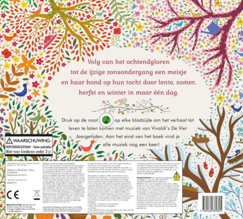 Op elke bladzijde staat een muzieknoot en als je daar op drukt… komt het seizoen in klank tot leven met muziek uit De vier jaargetijden van Vivaldi.