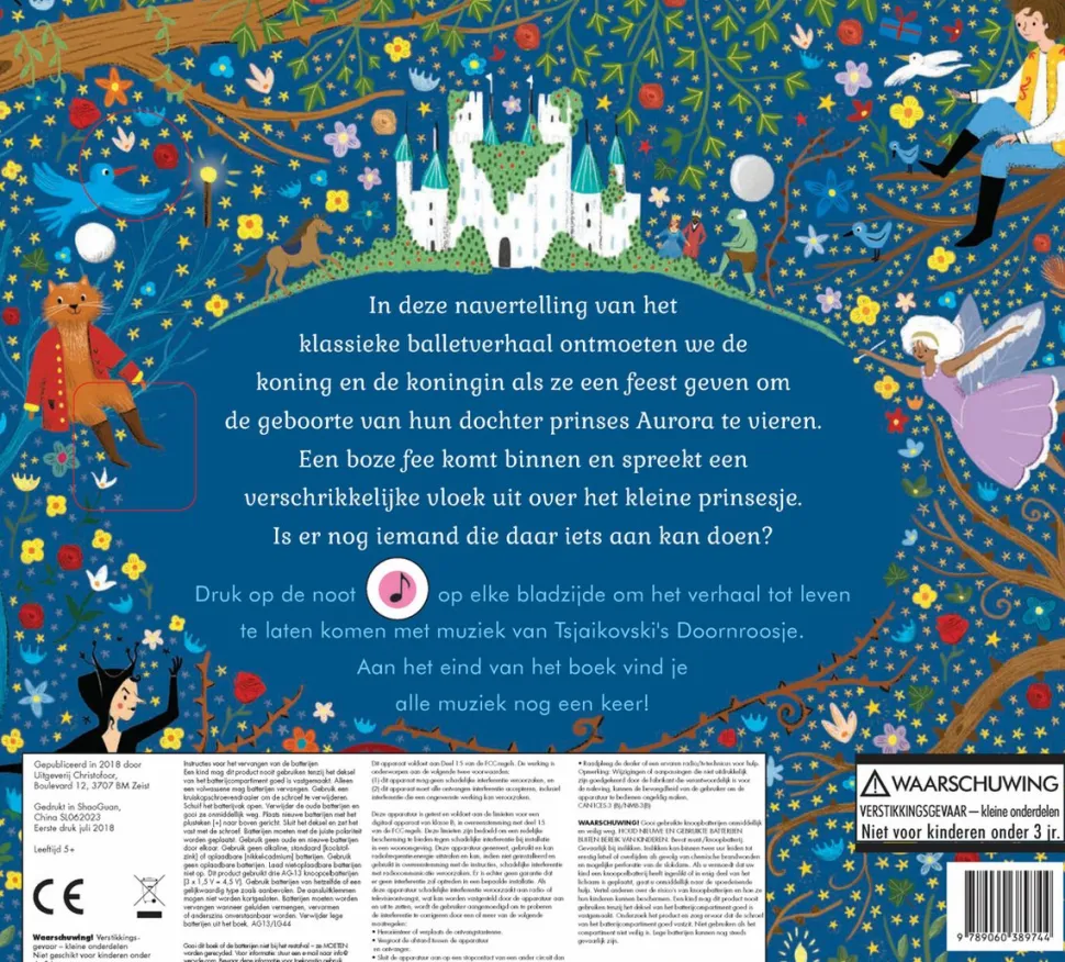 In deze navertelling van het klassieke ballet De schone slaapster ontmoeten we de koning en de koningin, als ze een feest geven om de geboorte van hun dochter prinses Aurora te vieren. Een boze fee komt binnen en spreekt een verschrikkelijke vloek uit over het kleine prinsesje. Zou er nog iemand zijn die haar kan helpen? Op elke bladzijde kun je op een noot drukken, waardoor het verhaal tot leven komt met muziek van Tsjaikovski’s Doornroosje, gespeeld door een echt orkest!