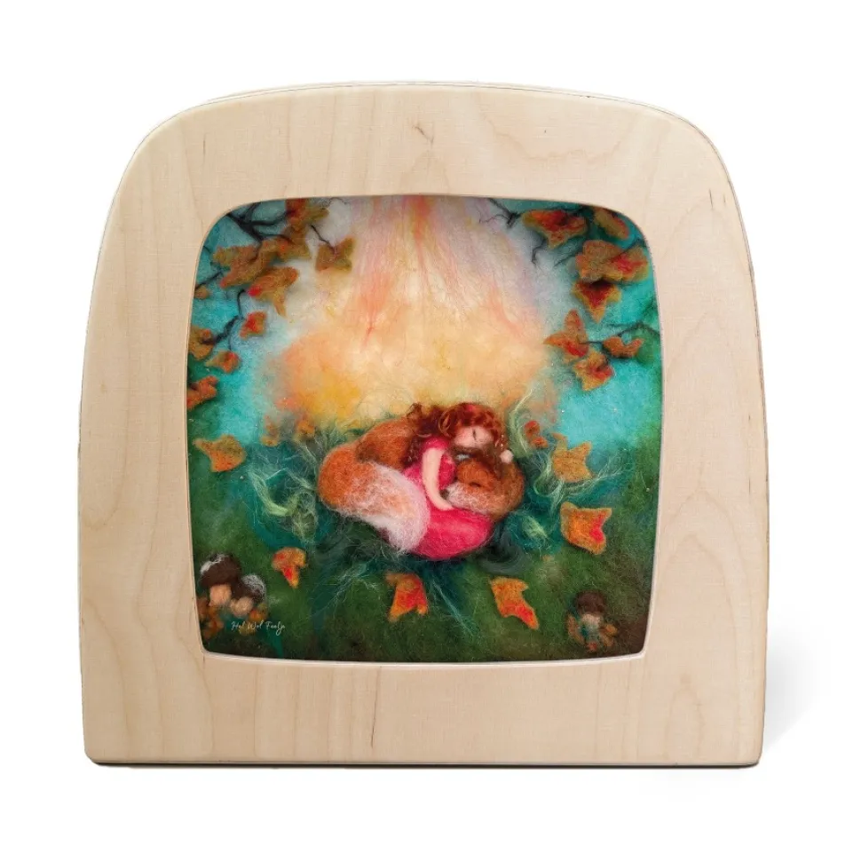 De kunst op deze plaat is gemaakt door Het Wolfeetje. Zij maakt prachtige kunstwerkjes van wol met dromerige en seizoensgerelateerde tafereeltjes.