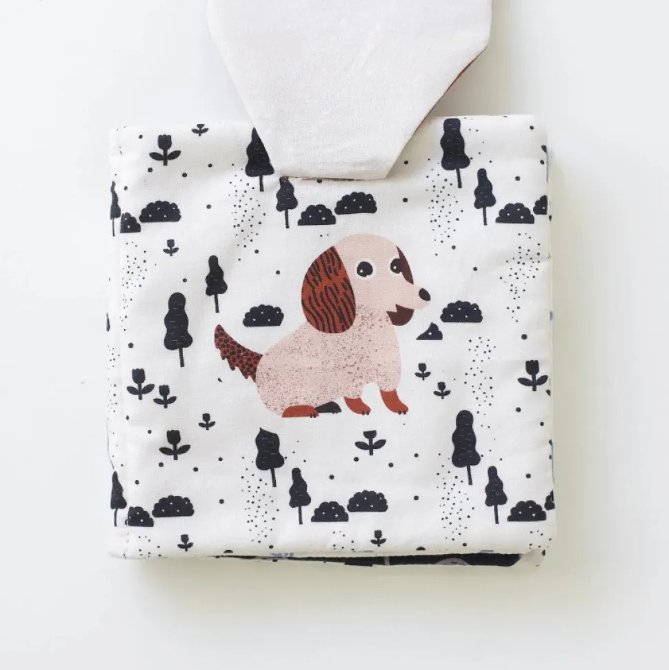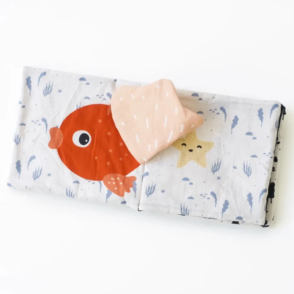 Ontdek wat er verstopt zit onder de knisperende dierenhok of de staart van de vis. Dit fijne zachte boekje heeft contrastkleuren zodat het door de allerkleinsten al goed te zien is.